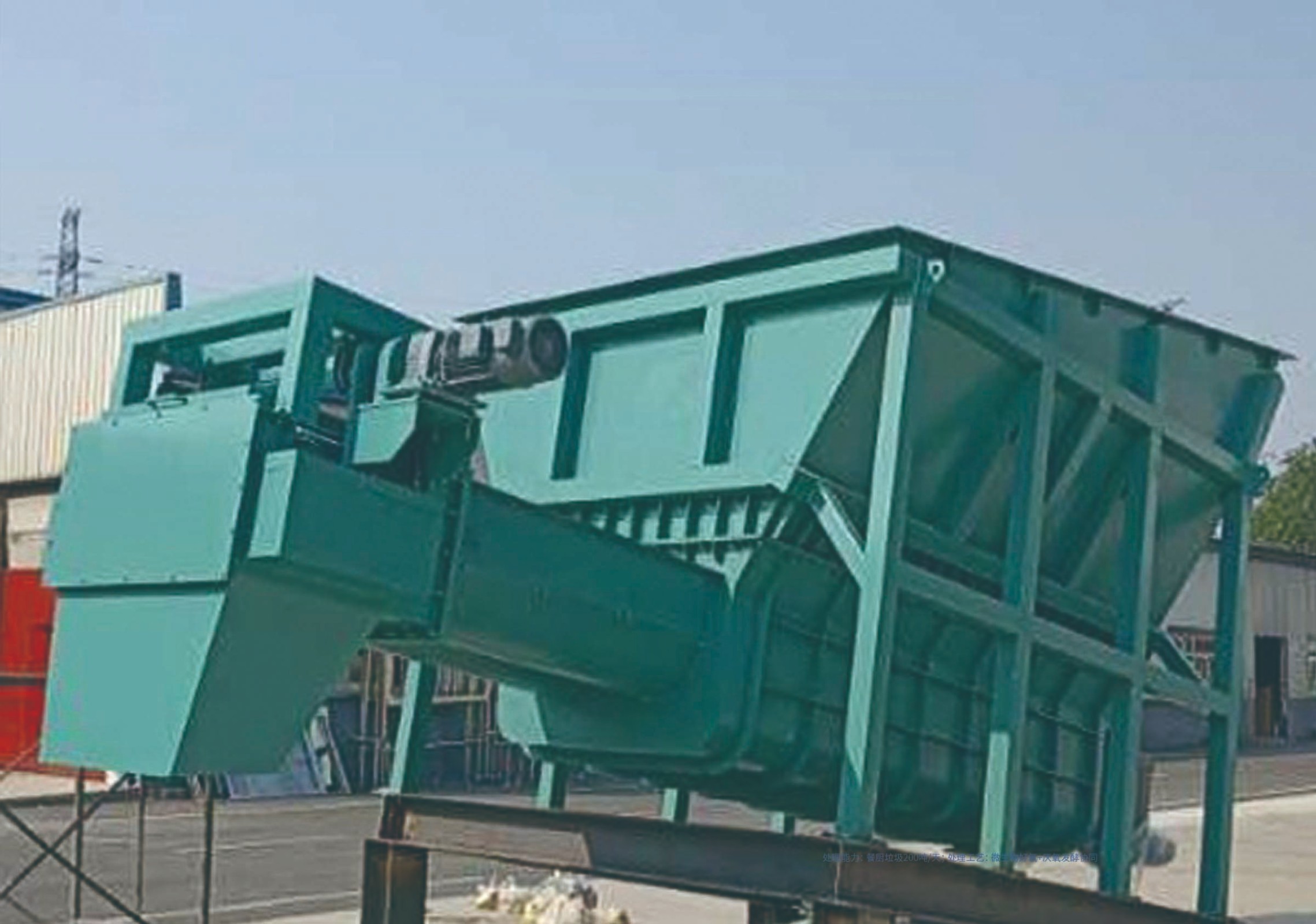 用途:用于厨余垃圾的接收原料、缓存、拉薄摊铺、实现后续处理的连续供料、渗滤液和臭气有组织收集等功能于一体的一体化装置。