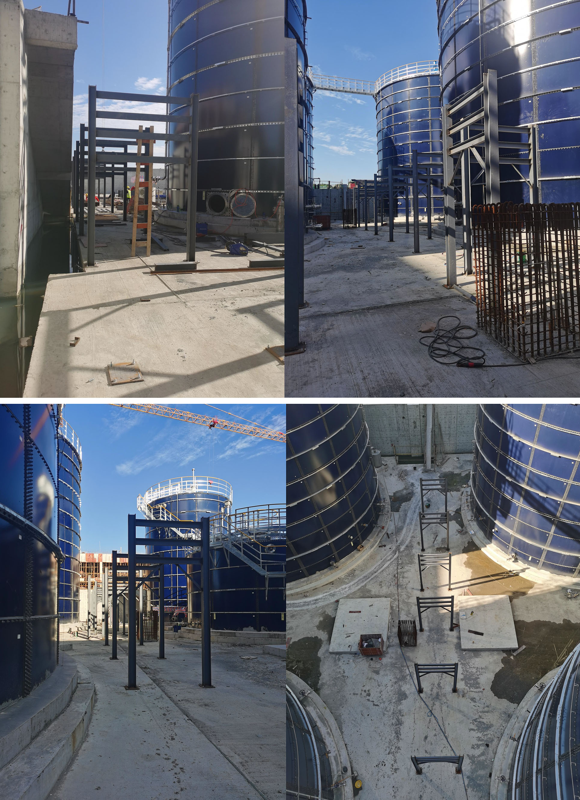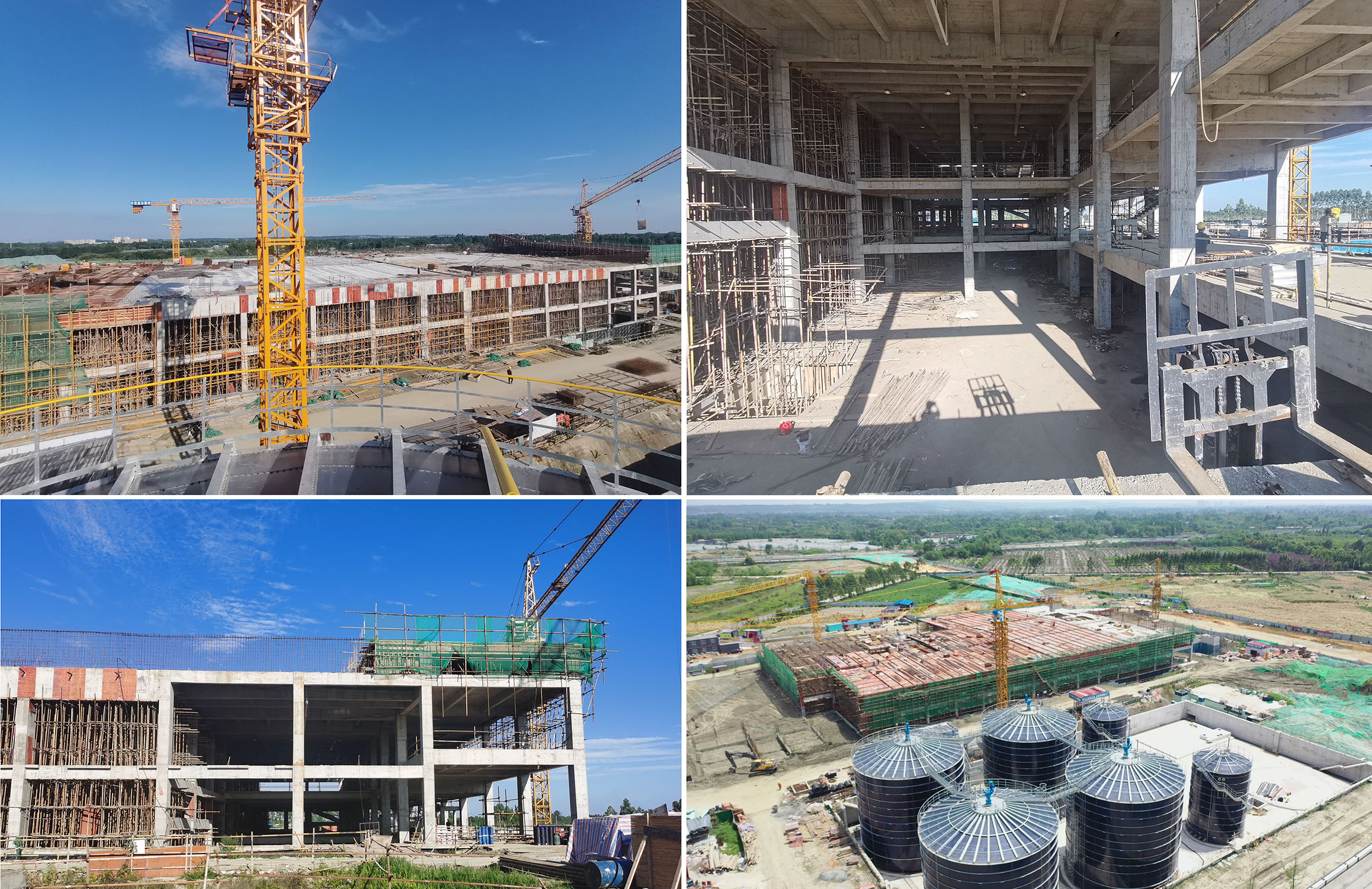 施工现场如火如荼,热火朝天。主车间拔地而起,初具雏形,接近封顶;室外厌氧区主体也已初具规模,蔚为壮观。龚总等一行对项目进展比较满意,同时也提出了一些要求,望各方按计划保质保量圆满完成施工建设任务。